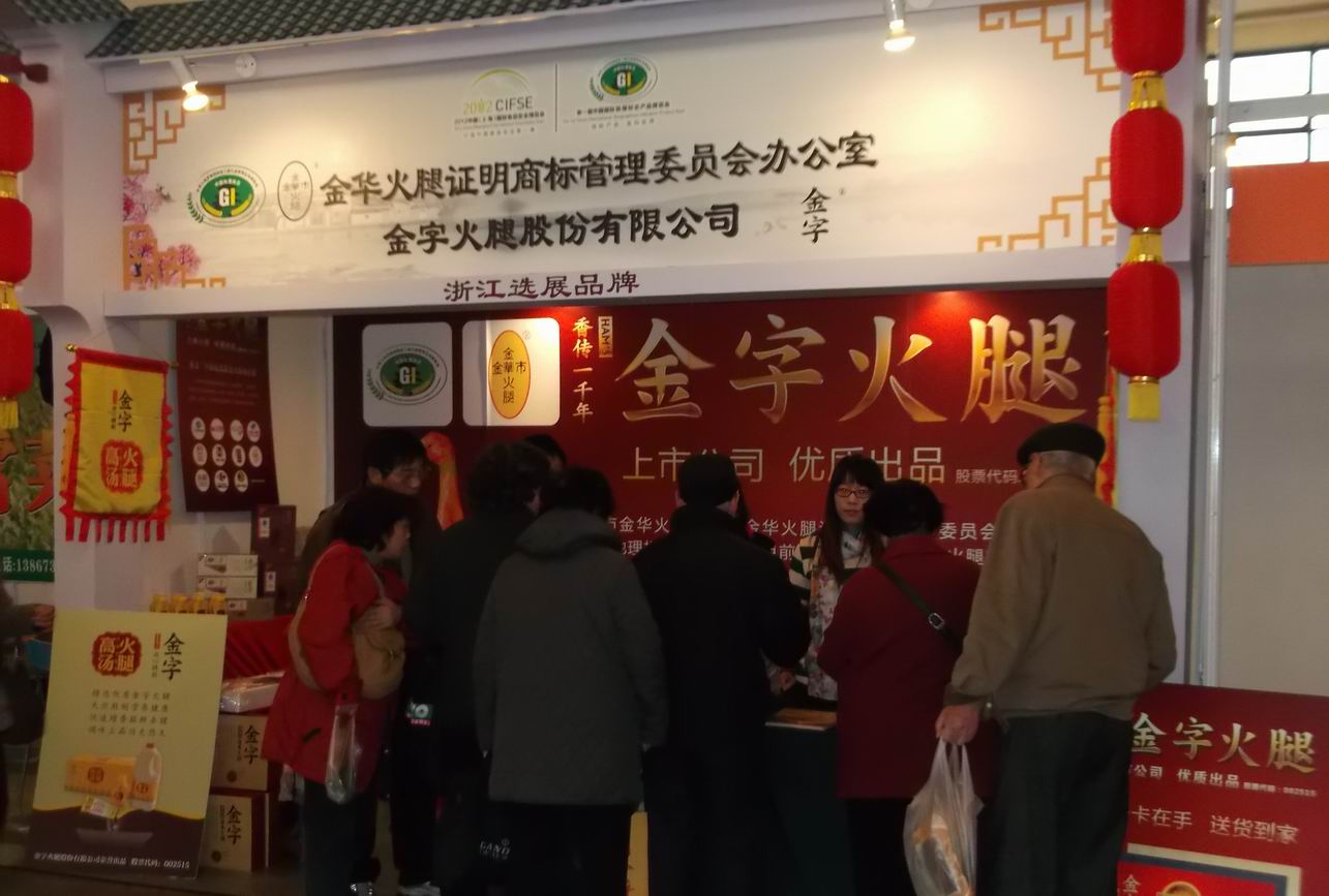 近日,首屆中國國際地理標志產(chǎn)品博覽會在上海展覽中心舉行,全國30多個省市(自治區(qū))160多個地理標志產(chǎn)品亮相。金字火腿作為浙江省16家地理標志產(chǎn)品之一代表金華火腿參展。此次展會由國家工商行政管理總局、上海市人民政府、中國國際貿(mào)易促進委員會、中國國際商會、中國民族貿(mào)易促進會主辦,規(guī)模空前,首次全面展示了中國的地理標志產(chǎn)品。